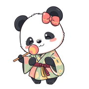Cook with sweetness in this funny apron! A cute panda in a vibrant kimono happily holds a lollipop.